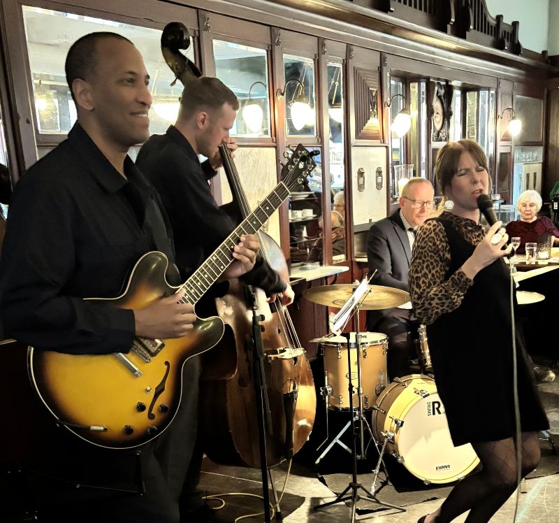 Vivian Buczek är en av våra främsta jazzsångerskor. När hon lierar sig med Elias Källvik gitarr, Simon Petterson kontrabas och Jonas Holgersson trummor blir det jazz på högsta nivå. Så oerhört fint. Det både syns och hörs att man trivs tillsammans.