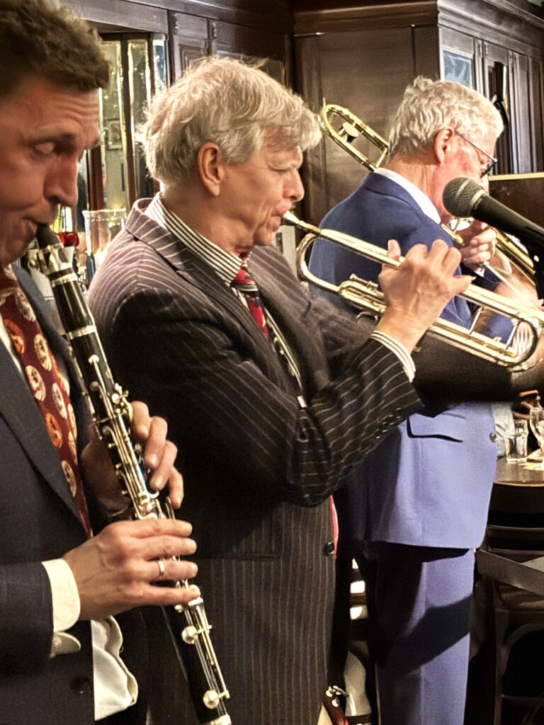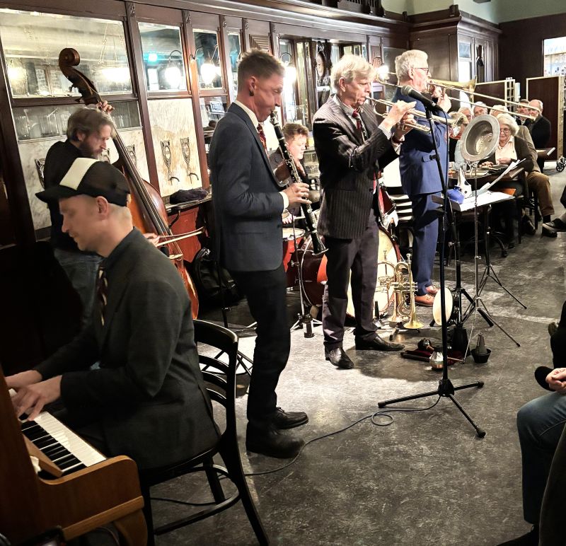 Bandleader Norbert Susemihl (elegant utan sin hästsvans!) trumpet, flygelhorn och sång, Chris Tanner (australiensaren som gjorde sin första spelning på Hot House som tonåring med The Hoodangers 1997 och därefter stannade i Köpenhamn) klarinett och sång, Hans Ingelstam (drygt 80 som trotsat sjukdom och lyser av spelglädje) trombon, Sven Erik Lundeqvist (den ojämförlige Svempa) piano, Jens Kristian Andersen kontrabas (som tog fram stråken i Once In A While, Michael Edwards storsäljande ballad från 1937 med Tommy Dorsey) och så Andreas Svendsen (så oerhört följsam oavsett vilken ”musiktyp” som bandet presenterade) trummor.
